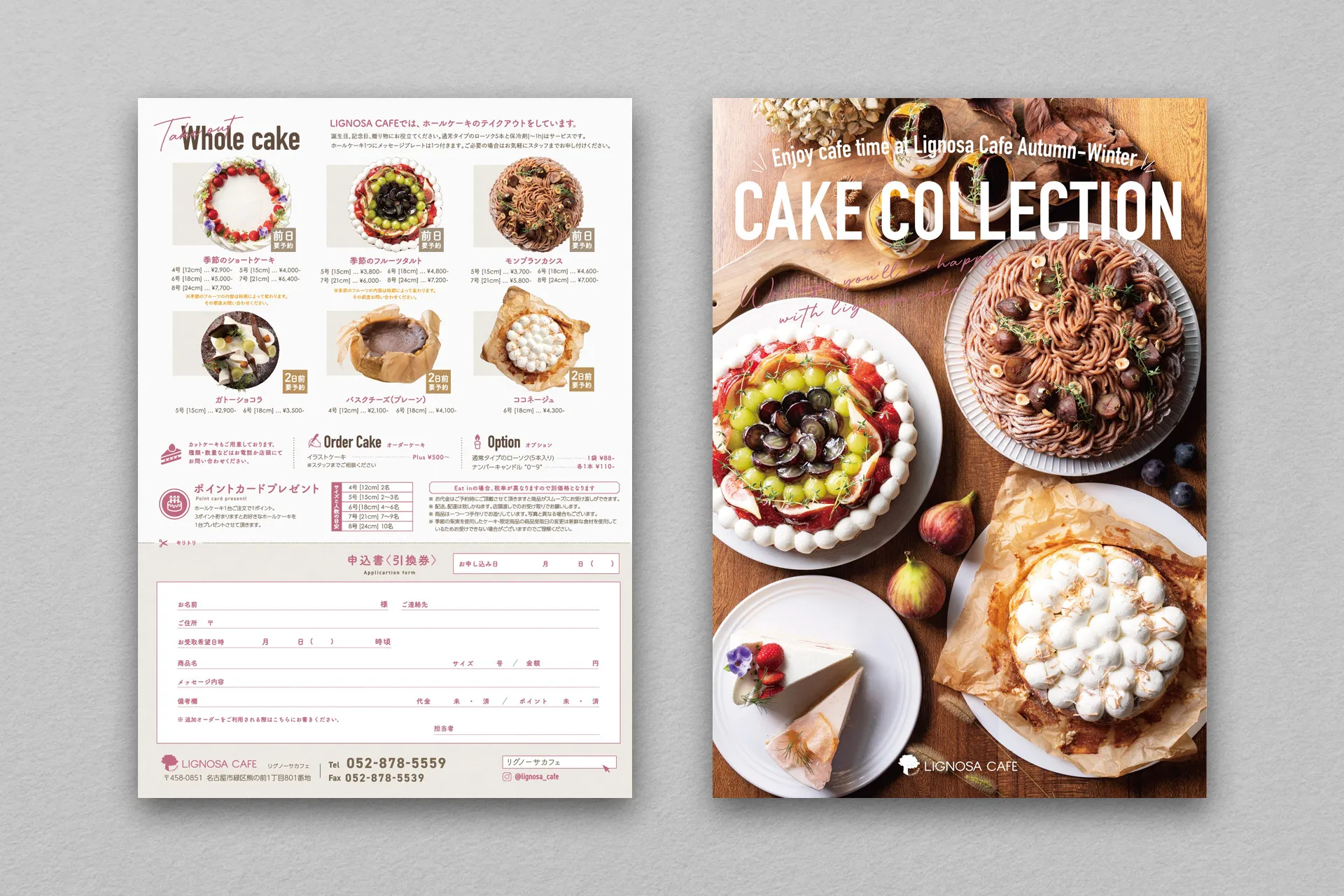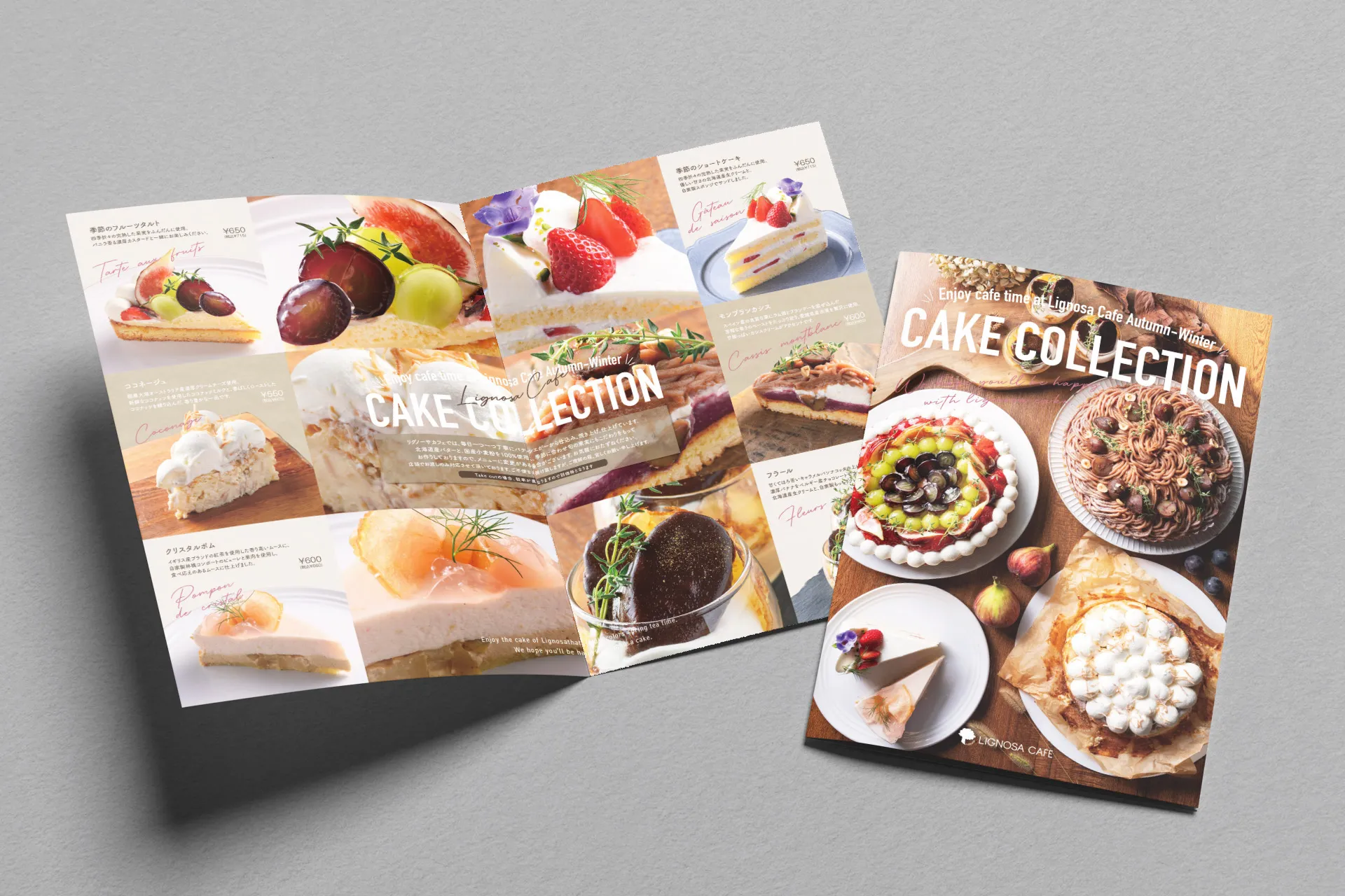 3店舗共通の季節のケーキメニューです。